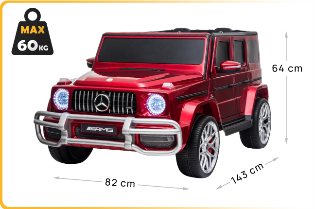 Το Mercedes Benz AMG G63 - Original License είναι ιδανικό για παιδιά ηλικίας 1-7 ετών* και μέγιστου σωματικού βάρους έως 60 κιλά.