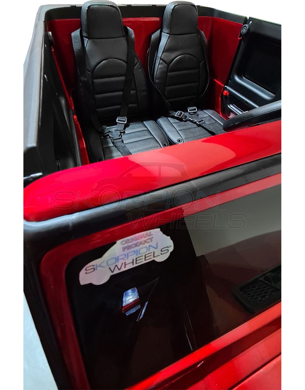 Άνεση & ΑσφάλειαΤο Mercedes Benz AMG G63 - Original License εφοδιάζεται με διθέσιο δερμάτινο κάθισμα που έχει δύο ζώνες 3 σημείων, κρατώντας τον αναβάτη σταθερό και ασφαλή. |