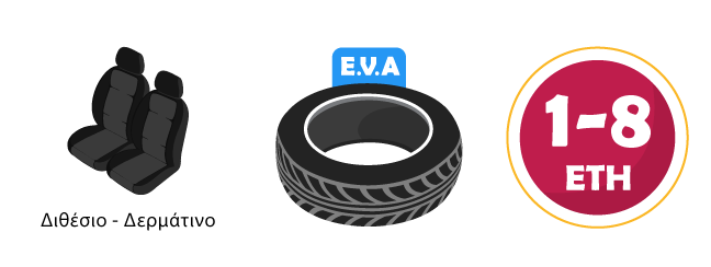 Το όχημα εφοδιάζεται με ρόδες από αφρώδες υλικό EVA (Ethylene-Vinyl Acetate) στο πέλμα τους με σκοπό την απόσβεση κραδασμών και θορύβου, κάνοντάς τα να έχουν μεγάλη αντοχή στο χρόνο.
