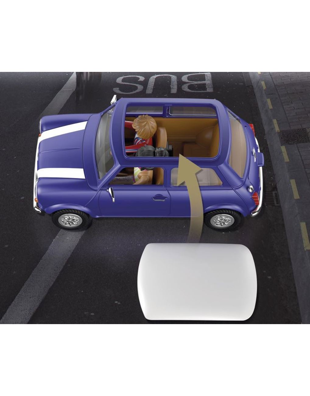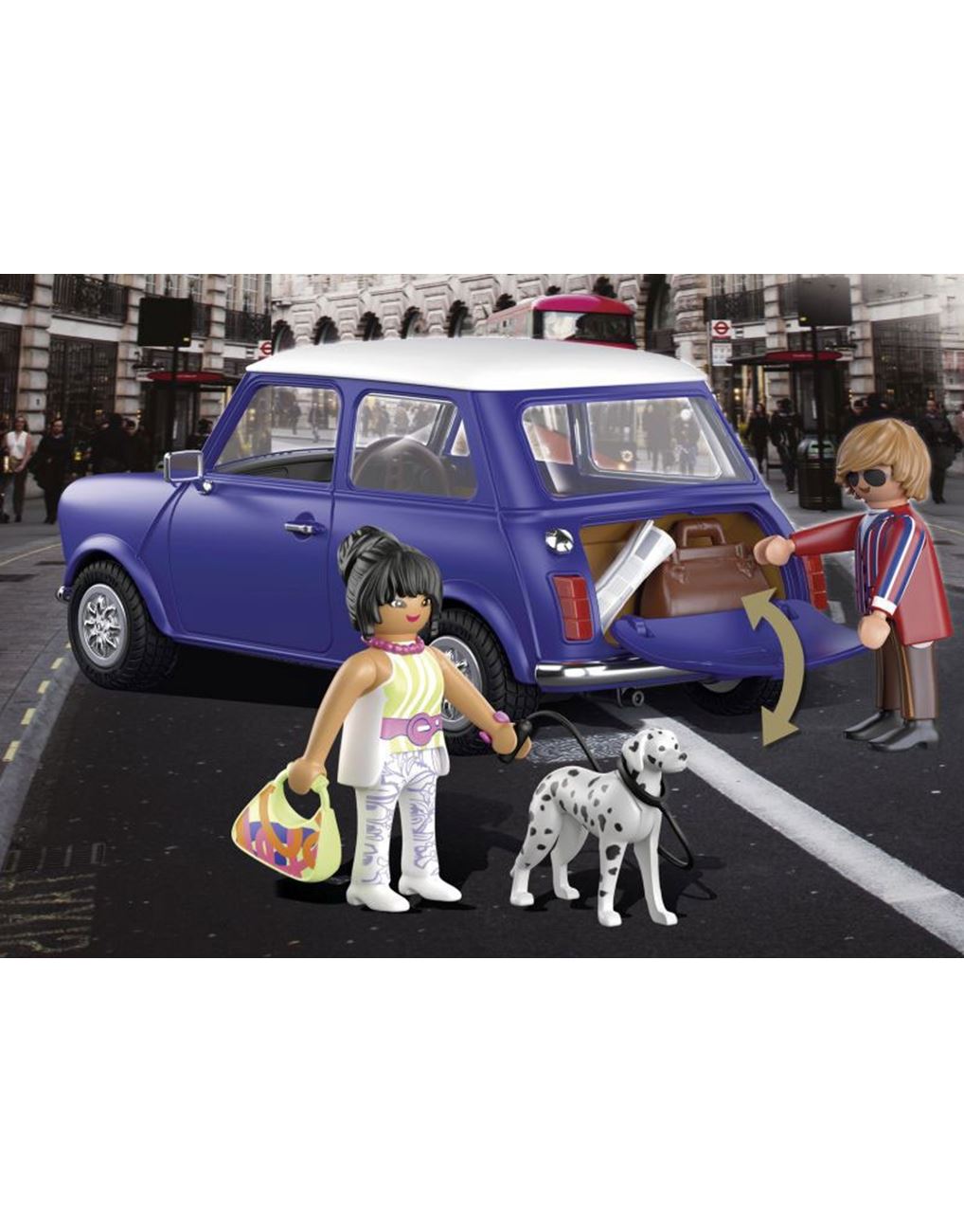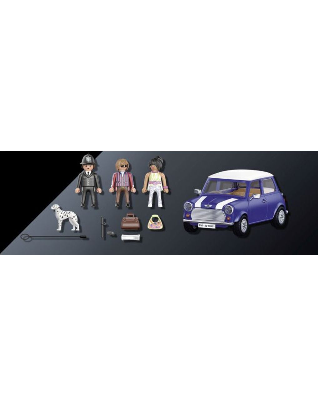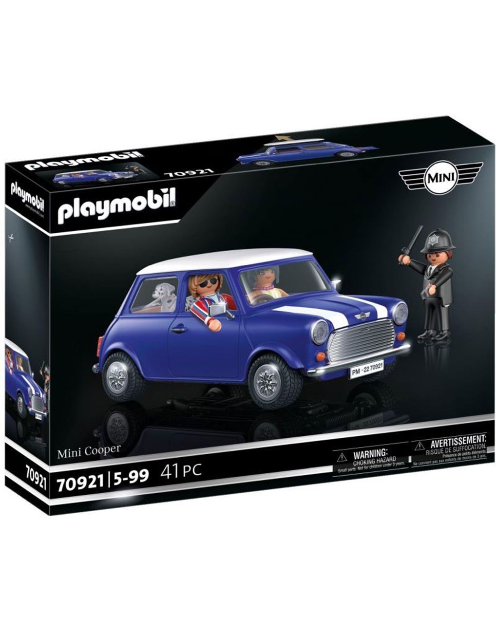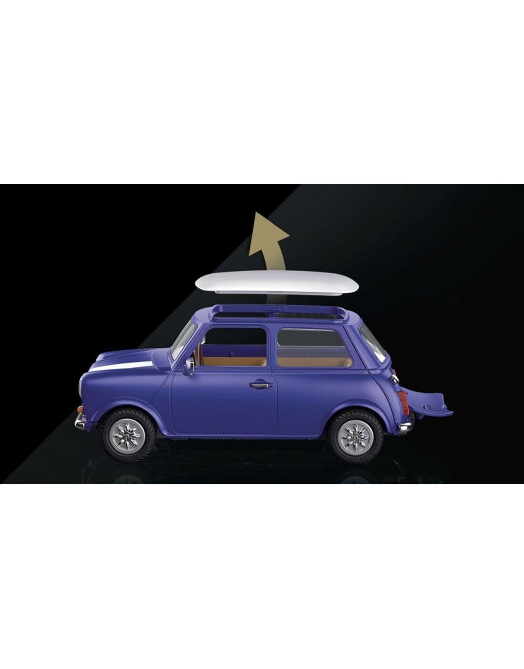 Το θρυλικό "mini" που μας ταξιδεύει στην Αγγλία των 70'. Αυτό το αυτοκίνητο είναι το απόλυτο σύμβολο της Μεγάλης Βρετανίας και κυκλοφορεί από την PLAYMOBIL με απίθανα αξεσουάρ και συλλεκτικές φιγούρες. Από τον Mr. Bean έως τους Beatles, όλοι έχουν οδηγήσει ή έχουν ονειρευτεί να έχουν ένα Mini Cooper. Όπως κανένα άλλο όχημα, το Mini Cooper αποτελεί το σύμβολο της βρετανικής αυτοκινητοβιομηχανίας και μέχρι σήμερα ξεχωρίζει για τον μοναδικό του σχεδιασμό. O ελληνικής καταγωγής Alec Issigonis έπεισε τους υπεύθυνους να επενδύσουν σε ένα μικροσκοπικό όχημα, που δεν είχε μεγάλο κόστος παραγωγής, ήταν οικονομικά φιλικό προς το κοινό και με κάποιον περίεργο τρόπο διέθετε τέσσερις θέσεις. Αυτό το θρυλικό αυτοκίνητο γίνεται σήμερα PLAYMOBIL και σίγουρα δεν πρέπει να λείπει από τη συλλογή σας. Στο εσωτερικό του χωράνε 4 φιγούρες PLAYMOBIL και διαθέτει εξαρτήματα με εφέ χρωμίου. Το τιμόνι και το κάθισμα του οδηγού βρίσκονται στη δεξιά πλευρά του αυτοκινήτου.